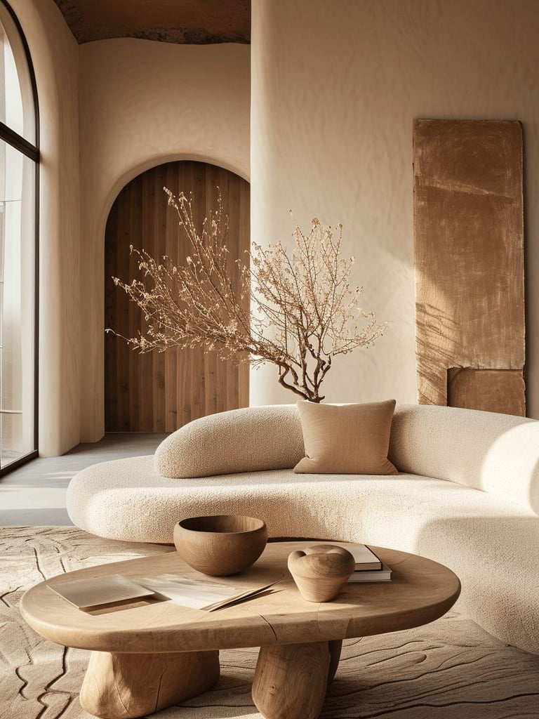Wood, linen, stone, and bamboo are the heart of Japandi design. Whether it’s a wooden coffee table, linen curtains, or a stone vase, natural textures add depth without clutter.